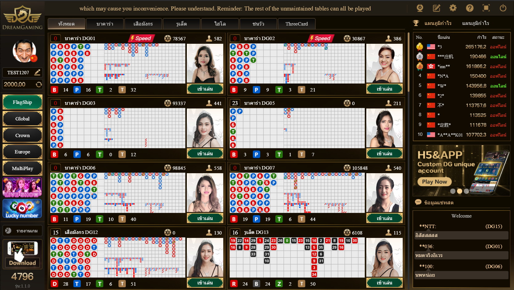 สำหรับจุดเด่นที่น่าสนใจของค่ายเกมพนัน Dream Gaming(ดรีมเกมมิ่ง) คือมีเกมคาสิโนสดให้คุณเลือกเล่นมากมายหลายเกม ยกตัวอย่างเช่น…
