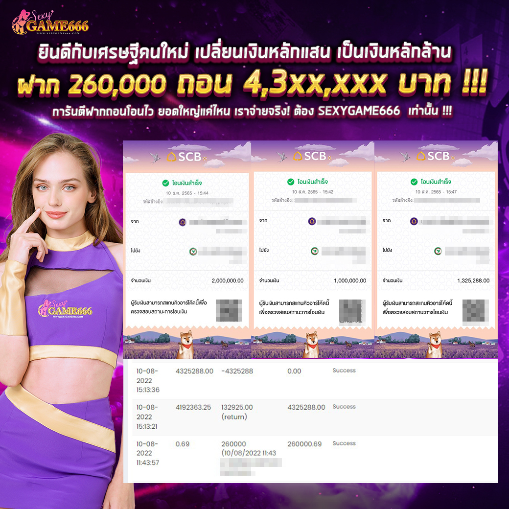 หากคุณเลือกใช้บริการเกมกับค่ายชั้นนำและเว็บ SEXYGAME666 คุณก็จัพบกับการเดิมพันบนมือถือได้ทั้งแนวตั้งและแนวนอนตามความสะดวกของคุณได้เลย ซึ่งความสะดวกสบายนี้มีให้บริการที่ค่ายเกมของเราเท่านั้น หากใครอยากเล่นเกมกับเรา ไม่ว่าจะเป็นเกมคาสิโนประเภทไหนก็ตาม คุณก็สมัครเข้ามาได้เลย ตลอด 24 ชั่วโมง ตามช่องทางที่คุณสะดวก